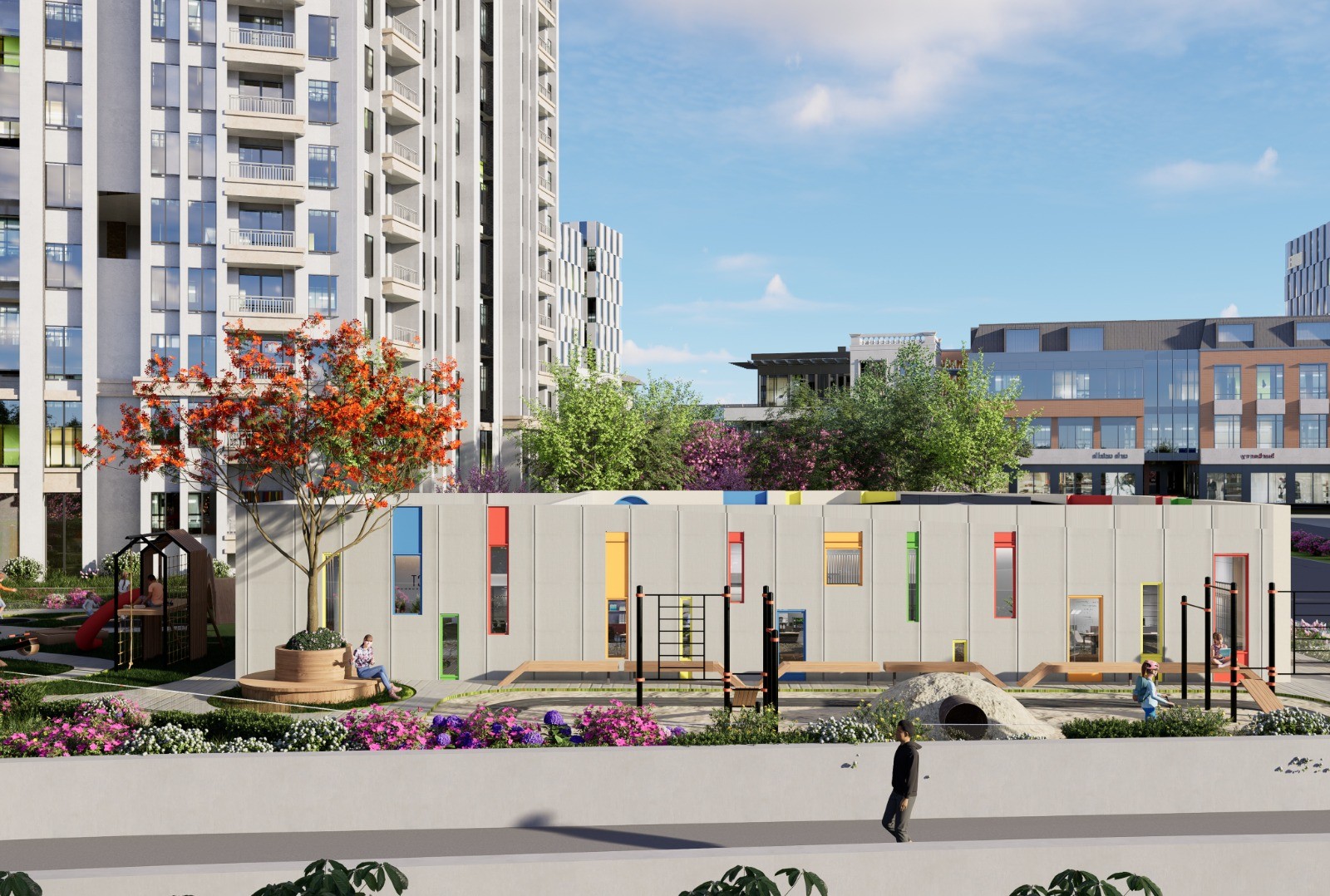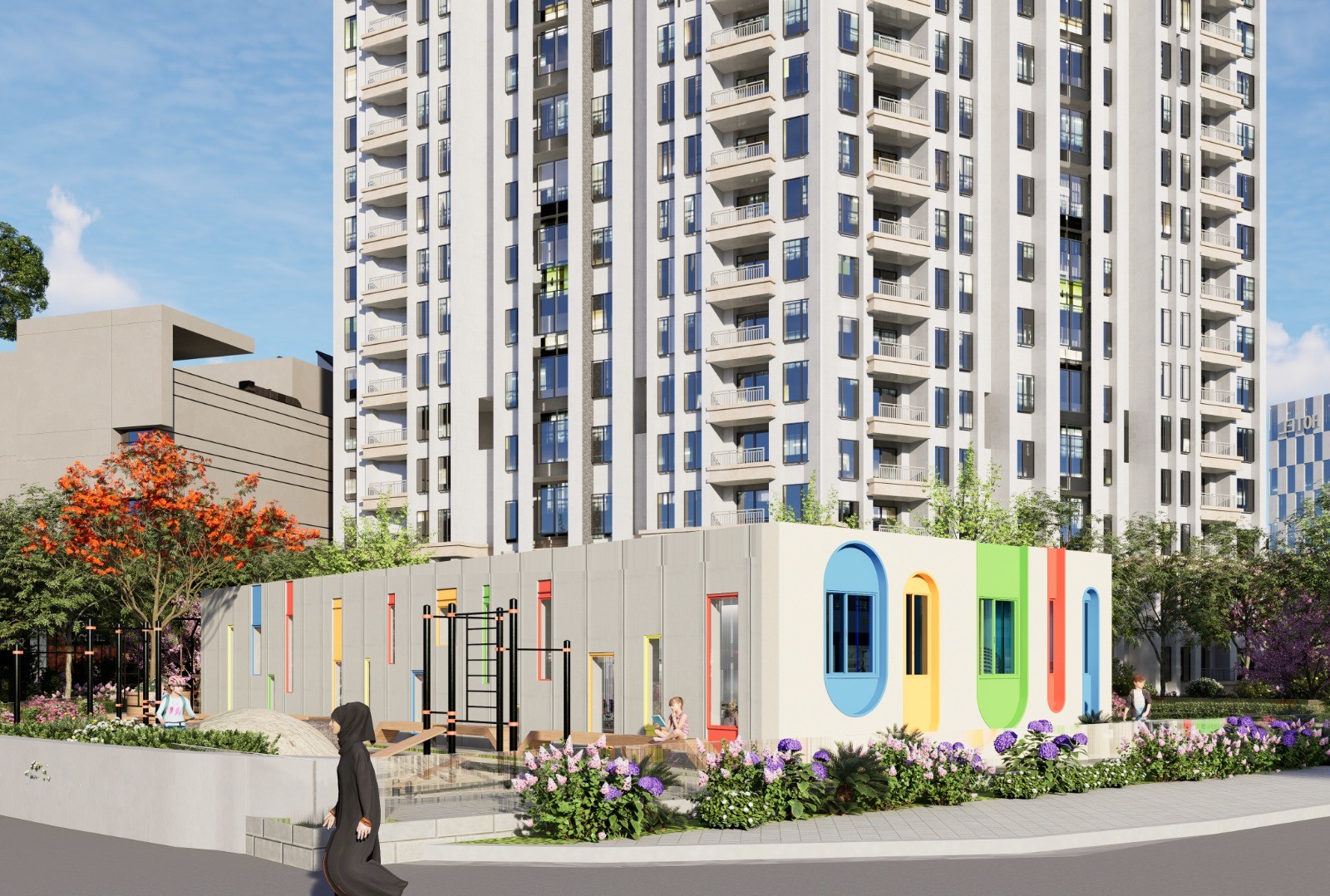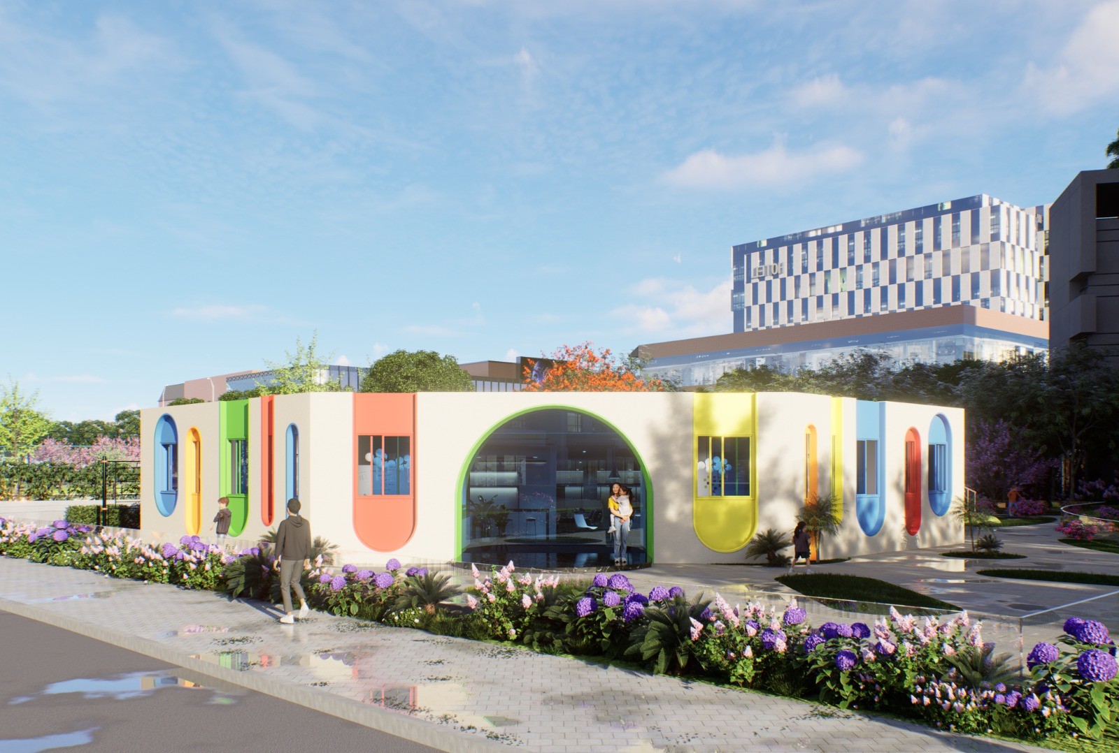 مساحة نابضة بالحياة وجذابة للأطفال في دولة الإمارات العربية المتحدة، مصممة لمجموعة هيلتون بألوان مرحة ومواد آمنة ومناطق تفاعلية تشجع على الإبداع والاستكشاف الممتع.