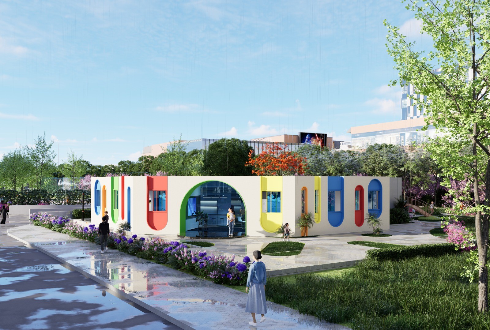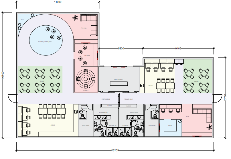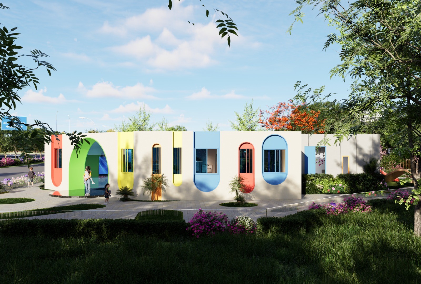 مساحة نابضة بالحياة وجذابة للأطفال في دولة الإمارات العربية المتحدة، مصممة لمجموعة هيلتون بألوان مرحة ومواد آمنة ومناطق تفاعلية تشجع على الإبداع والاستكشاف الممتع.